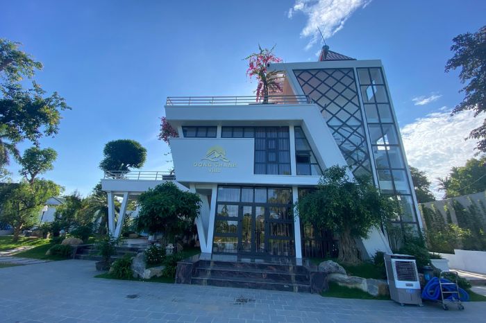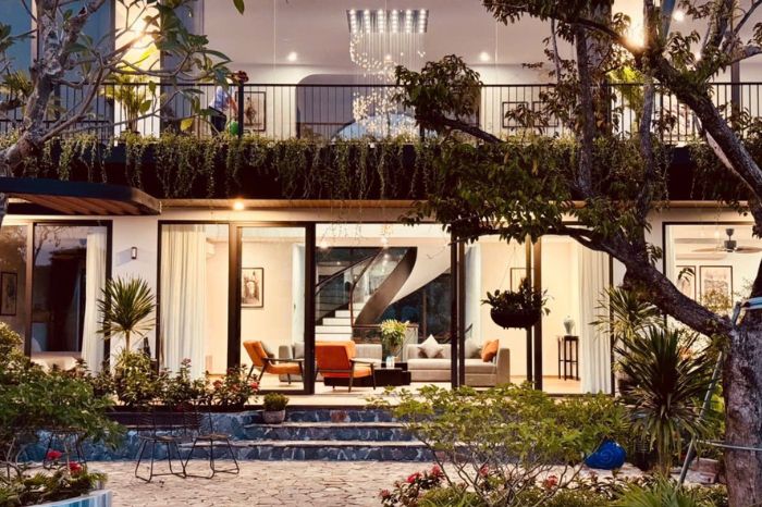 Khu villa Hòa Bình đẹp nhất này được thiết kế đơn giản với không gian mở thoáng đãng, sử dụng 805 là tường kính nên đón sáng tự nhiên. Nơi đây có không gian vườn 5000m2, nhiều cây xanh và hoa mang đến trải nghiệm trong lành, mát mẻ.