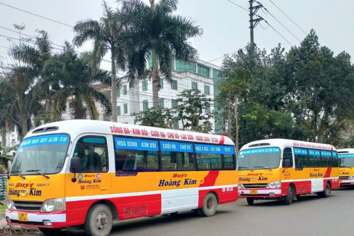 Bạn có thể chọn xe buýt số 1 tuyến Hòa Bình – Lạc Sơn, xe buýt số 2 Hòa Bình – Lạc Thủy, xe buýt số 4 Hòa Bình – Lương Sơn – Lạc Thủy, xe buýt số 5 Hòa Bình – bến xe Yên Nghĩa, tuyến xe buýt Thung Nai – Cao Sơn…