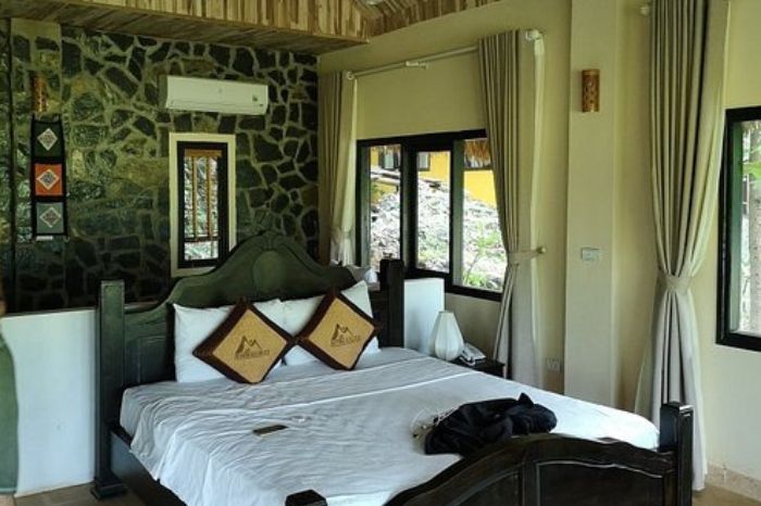 Các phòng khách sạn đa dạng, bao gồm các trải nghiệm ở nhà sàn phù hợp cho khách du lịch bụi, cặp đôi và gia đình. Nơi đây thường tổ chức các tour đi bộ, show văn nghệ và các hoạt động ngoài trời, cho thuê xe đạp khám phá thiên nhiên thơ mộng.