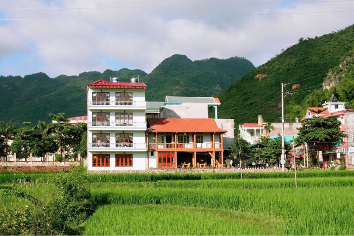 Mai Chau Hotel & Homestay 24 – Hostelkhách sạn Hòa Bình phù hợp cho những ai đang tìm kiếm một nơi nghỉ dưỡng giá rẻ, hòa mình vào thiên nhiên. Khách sạn được thiết kế mang đậm bản sắc địa phương với kiến trúc nhà sàn mát mẻ, thoáng đãng.