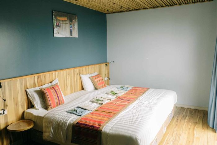 Đặt phòng tại đây, du khách sẽ được chủ nhà đón tiếp nồng hậu, thưởng thức các món đặc sản của Mai Châu. Ngoài ra, còn được tư vấn các hoạt động thú vị tại Mai Châu như trekking, đạp xe dạo quanh những cánh đồng lúa bát ngát, làng nghề dệt thổ cẩm.