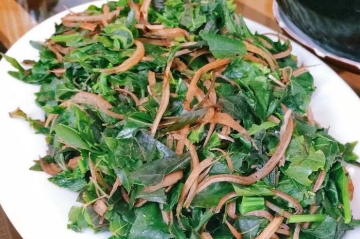 Chả rau đáu là món ăn đặc biệt của người Mường Hòa Bình. Top 22 đặc sản Hòa Bình này được làm từ rau đáu mọc tự nhiên tại các khe suối.