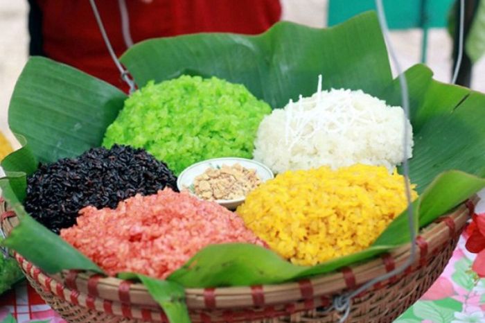 Xôi nếp nương Mai Châu được chế biến thành xôi ngũ vị với 5 màu sắc tượng trưng cho ngũ hành. Những màu sắc này được chiết xuất từ các nguyên liệu thiên nhiên, an toàn cho sức khỏe.