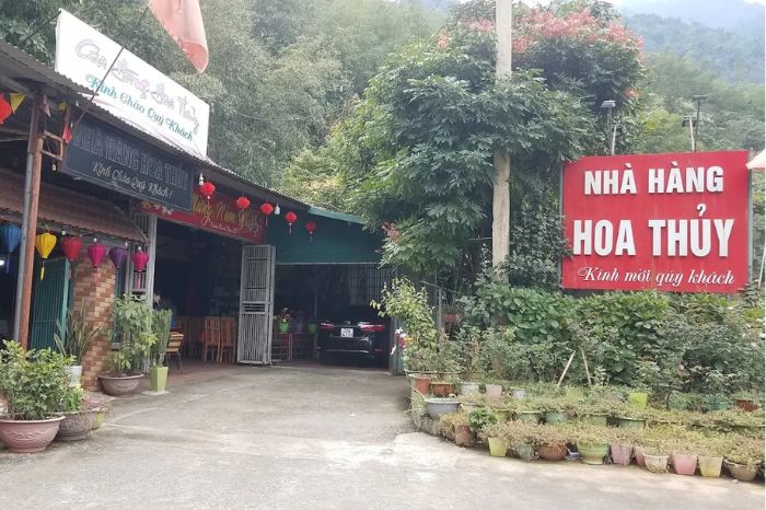 Nhà hàng Hoa Thủy là một quán cơm ngon ở Hòa Bình nằm giữa khung cảnh thiên nhiên tươi đẹp của Đồng Bảng, Mai Châu. Bao quanh bởi cây xanh nên nhà hàng mang đến bầu không khí thanh bình.