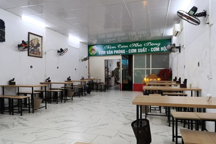 Thêm một quán cơm văn phòng ngon ở ngay trung tâm thành phố Hoà Bình mà hoabinhtourism.vn muốn giới thiệu đến bạn là tiệm cơm nhà Bông. Quán sạch sẽ, cô bán hàng luôn đeo găng tay và khẩu trang khi phục vụ cho khách.
