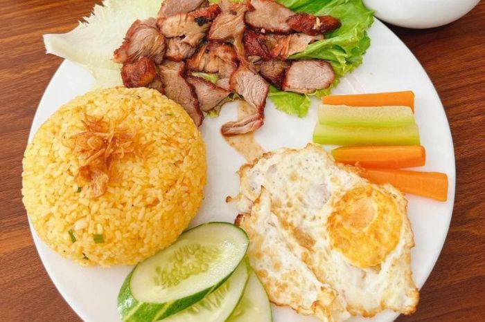 Ngoài ra, thực khách có thể đổi vị bằng món cơm ngon với menu đa dạng các món mặn, món xào. Giá cả ở các quán cơm cũng rất hợp lý, dao động từ 30.000đ – 50.000đ/suất.