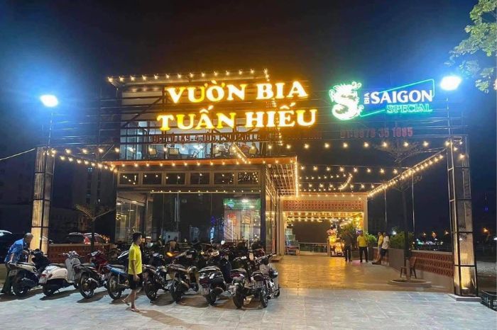 Thêm quán nhậu mồi ngon, hấp dẫn để bạn tụ tập cùng bạn bè là vườn bia Tuấn Hiếu. Quán thiết kế không gian sân vườn mát rượi, cây xanh phủ bóng mát với những bộ bàn ghế rộng, thoải mái cho nhóm đông người.