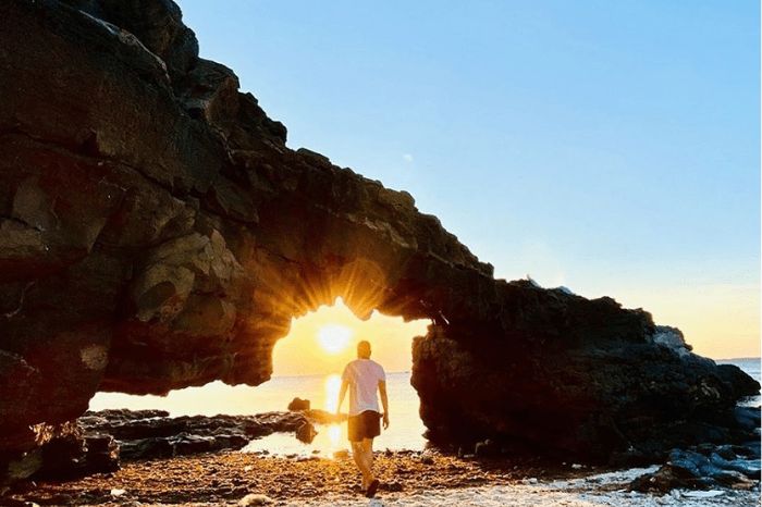 17h30 Đi đến cổng Tò Vò, check in với ánh hoàng hôn tuyệt đẹp trên đảo.