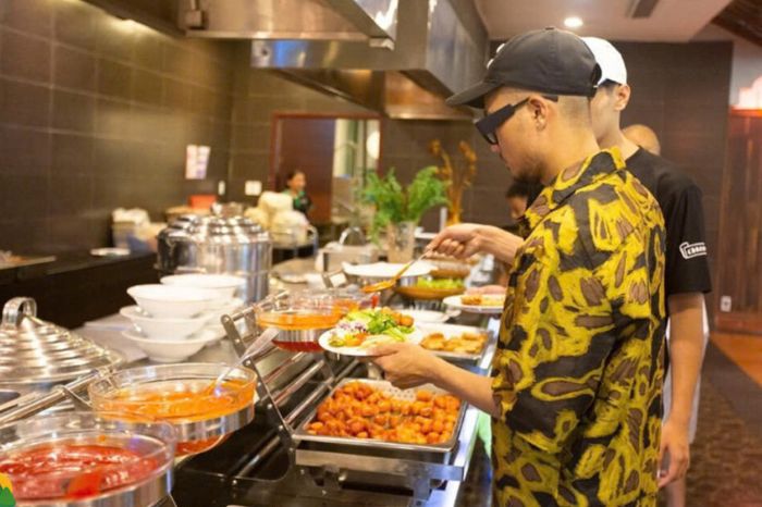 - Thưởng thức ẩm thực Á – Âu tại nhà hàng sang trọng cùng hơn 50 món ăn hấp dẫn.